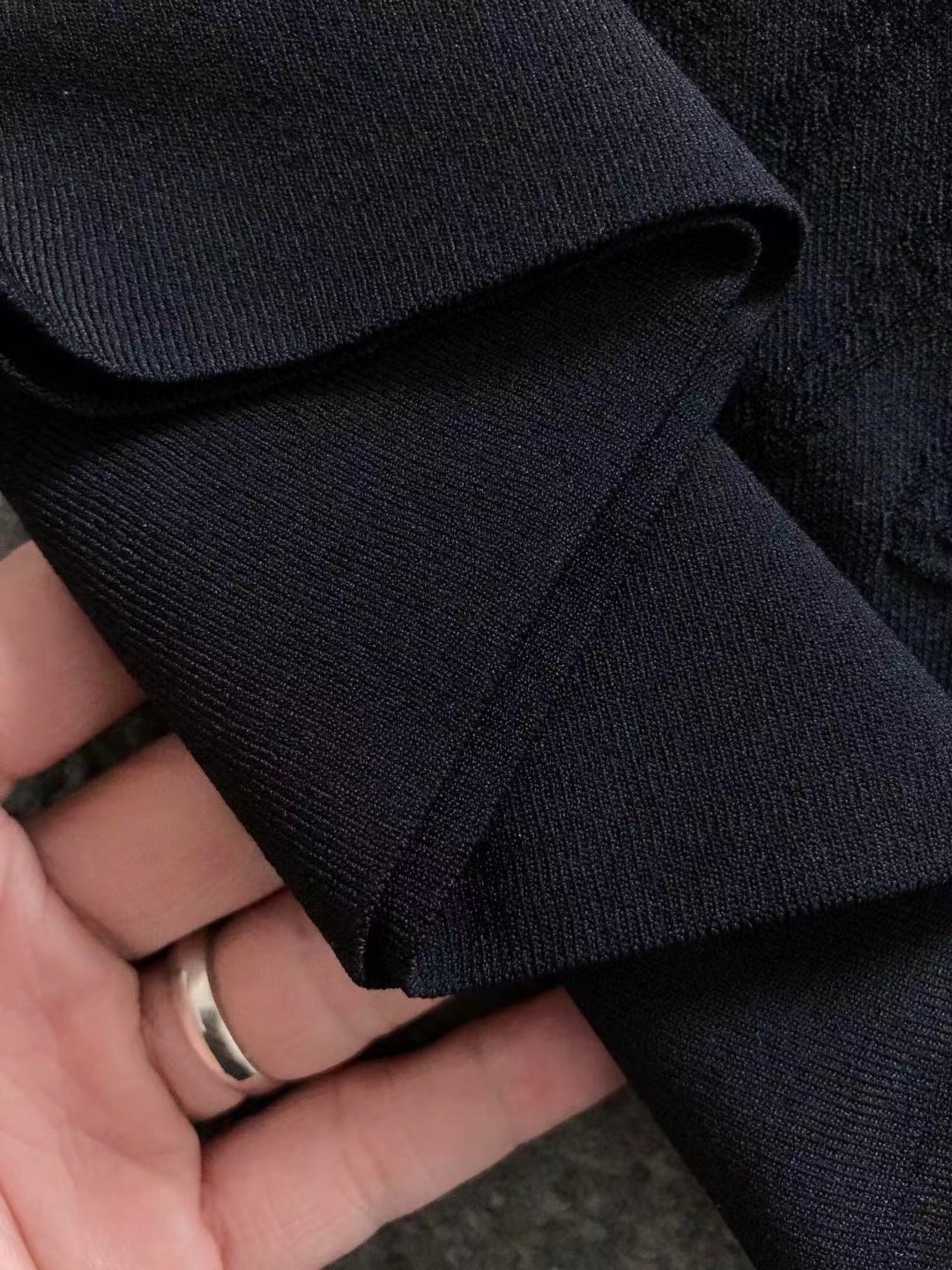 秋款原單進口私貨,專櫃重工伊立特黑咖雙杆提花拼接百搭款針織短袖,