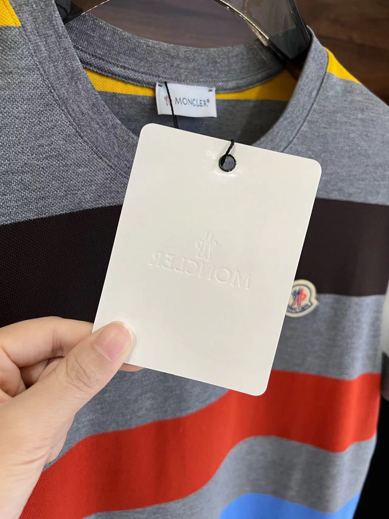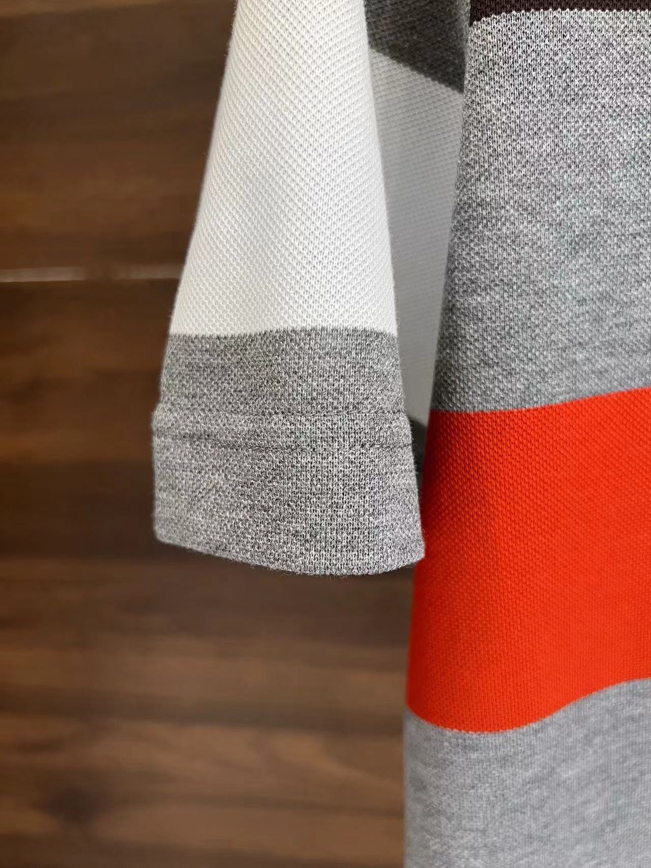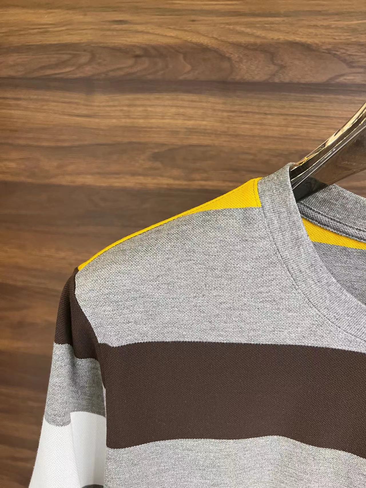 春夏專櫃新款寬條拼色圓領短袖T恤,