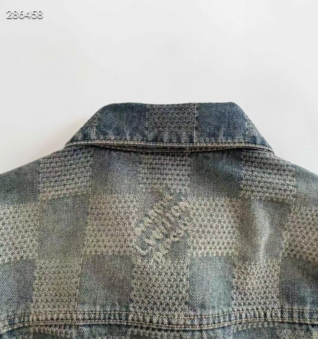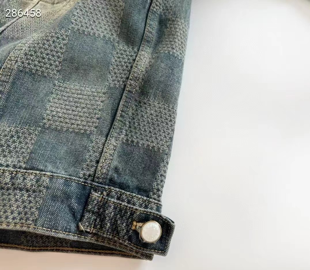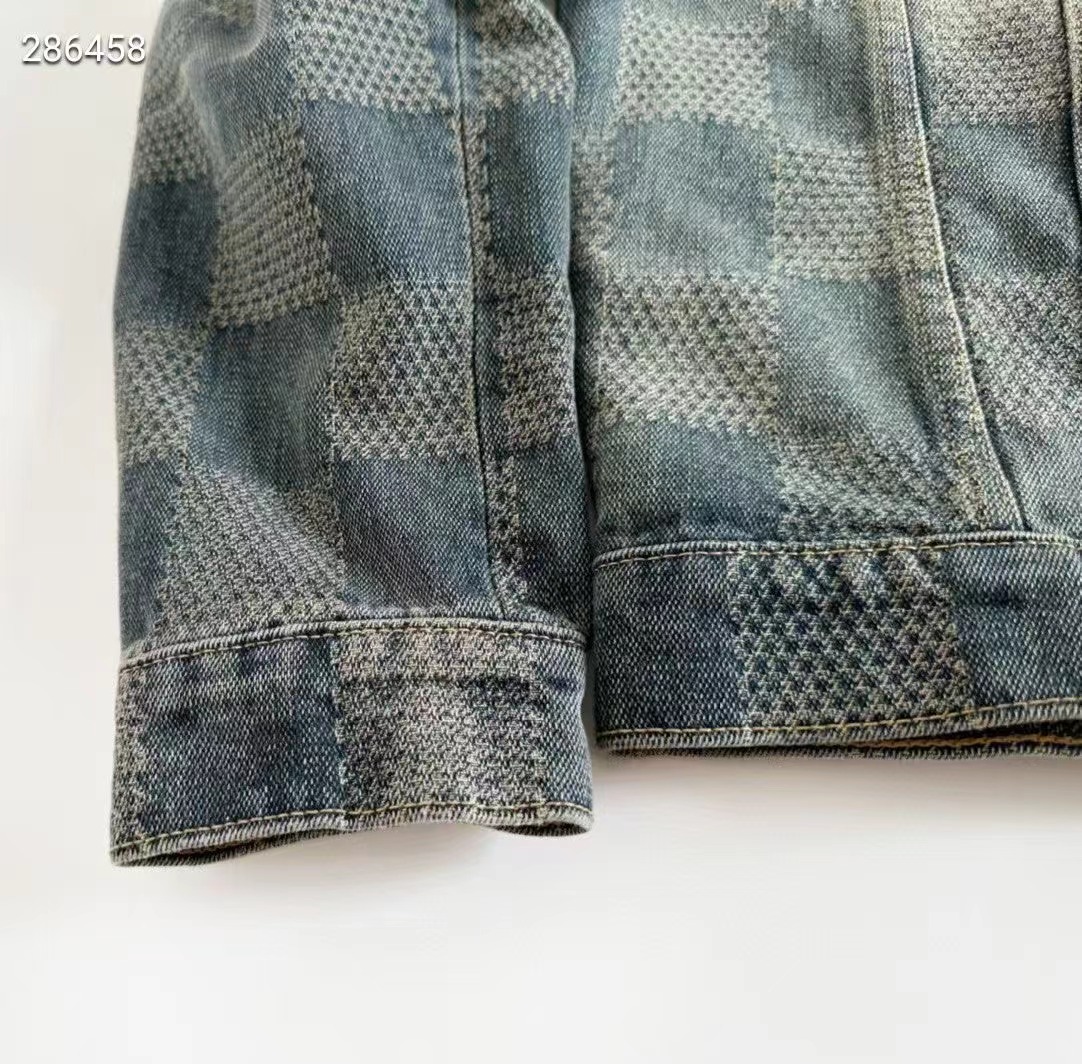 本款牛仔夾克選用水洗丹甯面料,爲 3D Damier 圖案