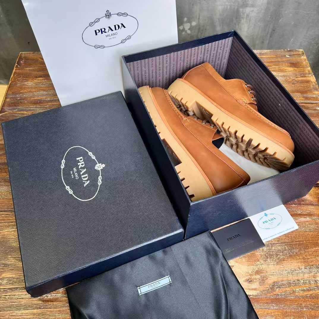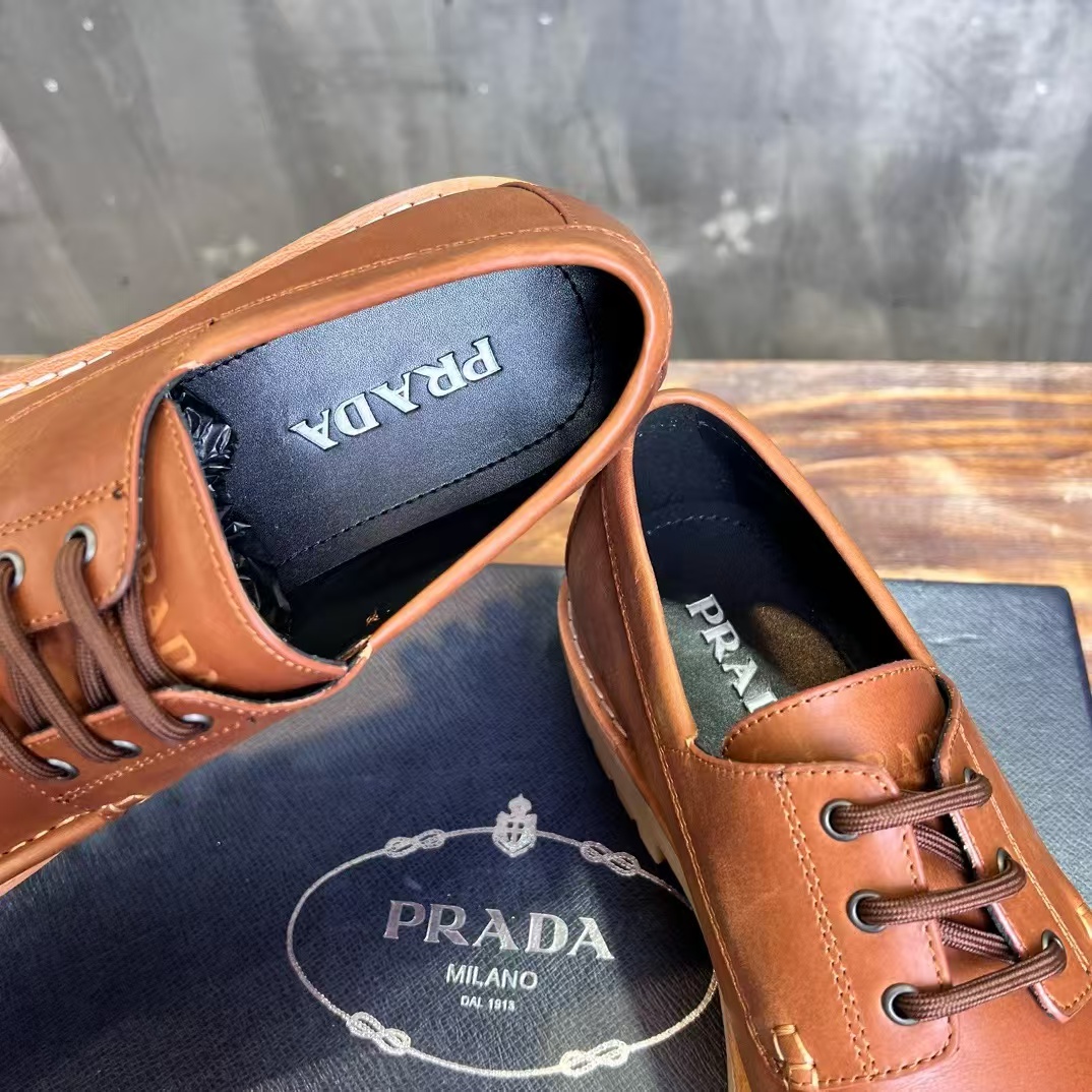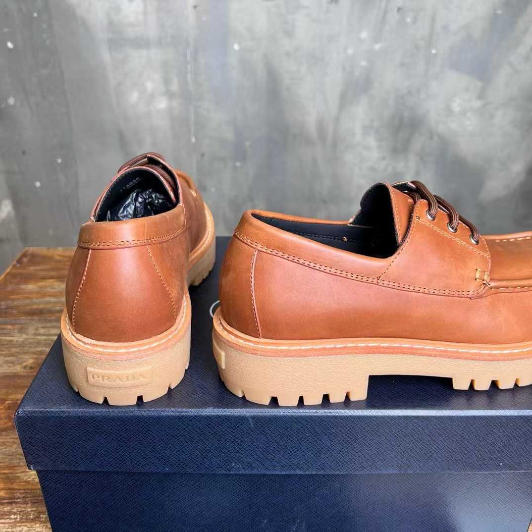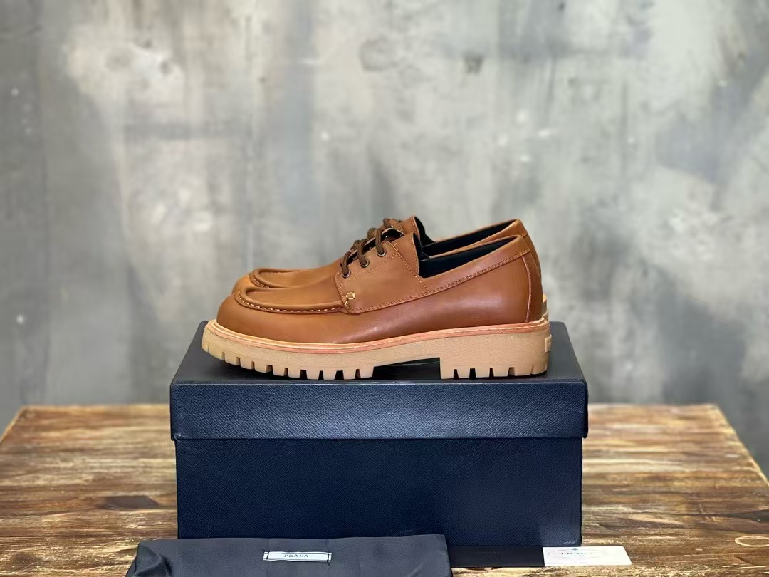 2024最新款普拉達系帶圓頭膽位樂福得比鞋,